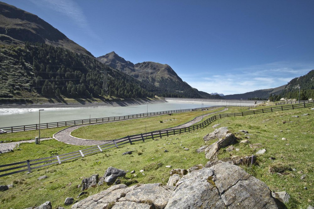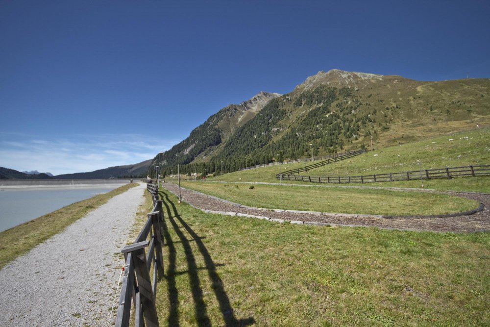 With the Three Lakes Lift to the mountain station, then on to the Drei-Seen-Hütte and to the south end of the Finstertal reservoir and back. Variation: along the dam road back to the tourist office(9.3km 220 Altitude Metres)
